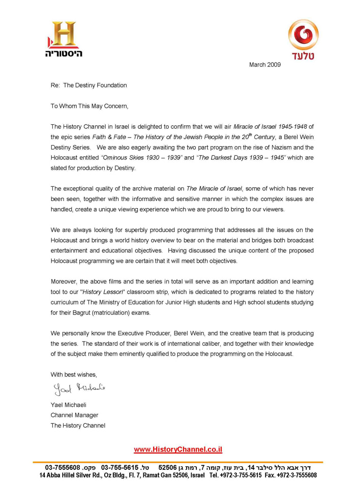History is our rearview mirror Berel Weln - Founder of Destiny